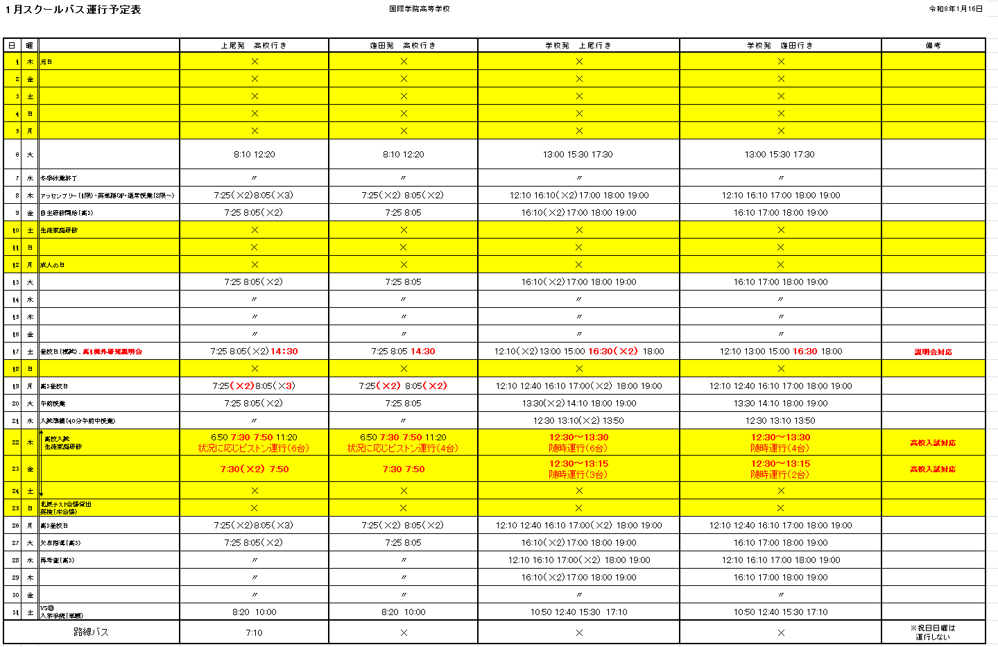 運行予定表