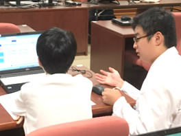 午後は「薬の効くメカニズムのコンピューターでのシミュレーション」をテーマに、高校数学が身近なところで利用されていることに触れ、「GeoGebra」で確率密度関数のグラフを作成したり、「Insight Maker」で薬の血中濃度のシミュレーションを関数や微分方程式を用いて行うなどの実習を行いました。