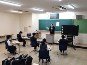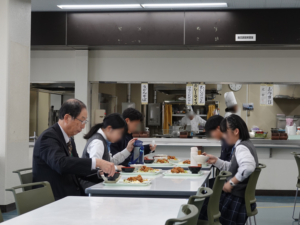 この日は、学校概要紹介から始まり、校内ツアー、部活動体験(射撃部)、学食体験と盛りだくさんな半日。