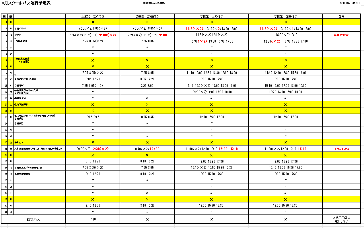 運行予定表